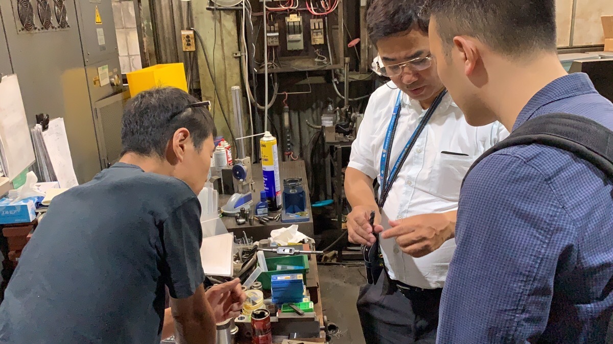 うちは金属加工がメインなんだけど、金属の塊を機械で削ってるんですけど、まぁ、ワンストップショップって言ってるんですけど、材料から製品の形を作って、熱処理、表面処理、メッキとか、そういう後処理まで一貫して部品を、そういう物を使う会社さんに提供する仕事で、主に図面を参考に作っています。